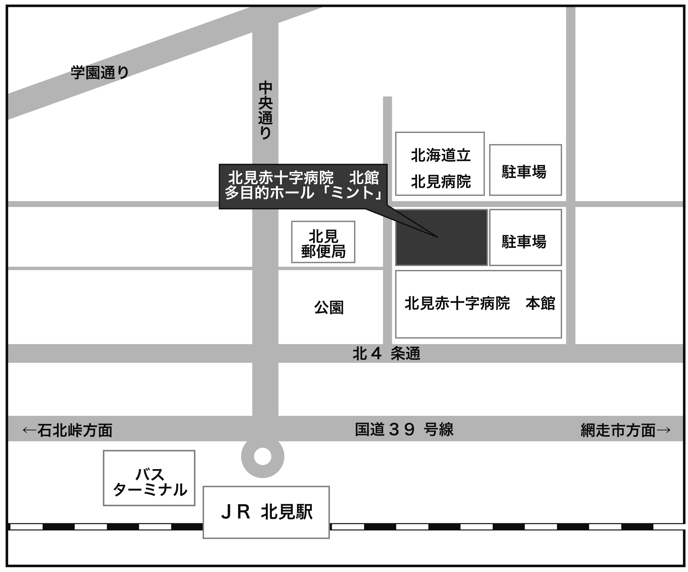 北見赤十字病院 北館多目的ホールミント 〒090-8666北見市北6条東2丁目1番地 《アクセス》